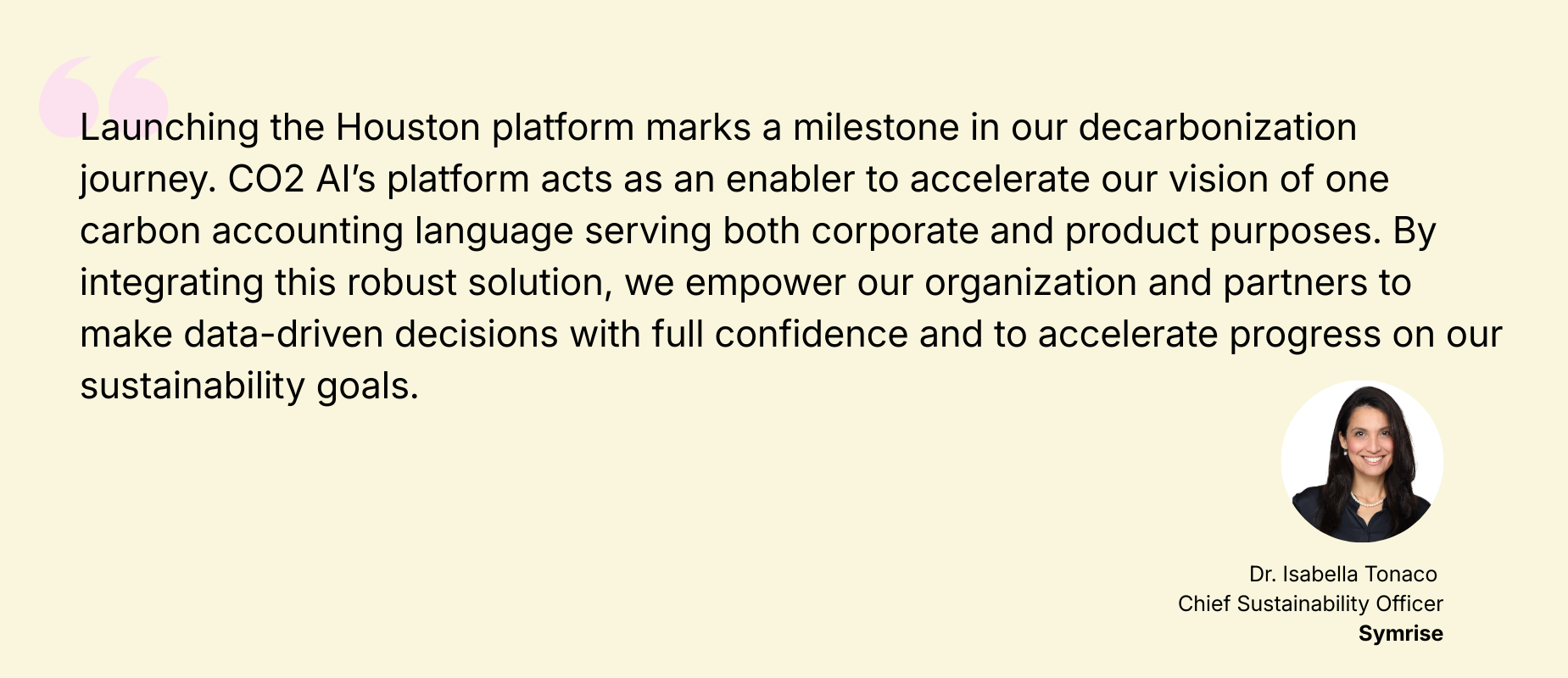 The Houston tool, powered by CO2 AI, enables Symrise to measure and manage product- and corporate-level carbon footprints with precision and efficiency. By integrating this carbon data, Houston empowers teams to gain real-time insights, prioritize impactful interventions, and ensure compliance with evolving regulations. The platform’s robust governance structure supports traceability and transparency, reinforcing Symrise’s ambition to advance in scalable decarbonization.
